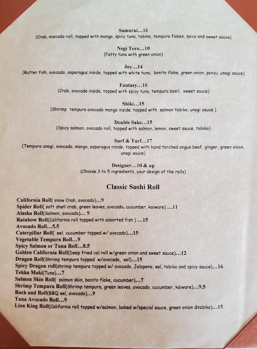 We’ve been eating here for years, and the fish is always fresh and expertly prepared. We especially love the Fire Cracker Ball, Joy Roll, and Spicy Geisha Roll. Additionally, the staff is exceedingly kind. A great place to dine in or take out.